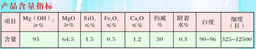 氫氧化鎂是一種白色粉狀,不含有害成份。它具有*佳的消煙阻燃性能。是一種新型的阻燃材料。適用于PP PE EVA及高溫的工程塑料PBT及尼龍等良好填充。主要用于橡膠制品、